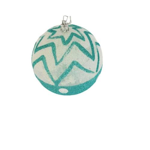 Kit com 2 bolas decorativas de natal branca com azul, confeccionada em PVC revestida com tinta e glitter.
