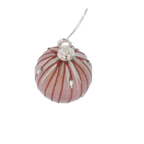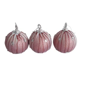 kit com 3 Bolas Decorativas de Natal na cor tons de rose com ocre, estrutura em EPS revestida em tecido com detalhes em pedras.