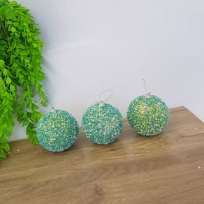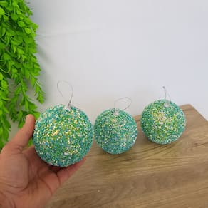 Material: EPS, Missangas e Mini Estrelinhas ; Peso do kit: 110gr Cor: Verde; Conteúdo da Embalagem: 1 kit com 3 bolas. Diâmetro de Cada Bola: 10cm