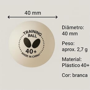As bolas Butterfly 40+ Training são ideais para quem busca alto desempenho nos treinos Fabricadas em plástico ABS de alta qualidade, possuem excelente durabilidade, quique uniforme e são perfeitas para jogadores iniciantes, intermediários e até clubes que valorizam consistência e custo-benefício. - Diâmetro oficial de 40+ mm - Material plástico ABS - mais resistência e vida útil - Ideal para treinos intensos e repetitivos - Ótimo custo-benefício para clubes, escolas e atletas em formação - Marca referência mundial no tênis de mesa