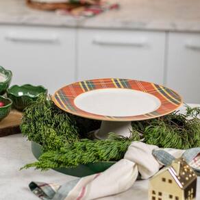 Boleira Copa E Cia Aquarelle Natal Em Cerâmica Xadrez Boleira Copa e Cia Aquarelle Natal em Cerâmica Xadrez - Características Gerais do Produto: - Composição: 100%Cerâmica. - Detalhes: Produzido no Brasil.; Peça Vendida de Forma Individual.; Design Exclusivo Copa&Cia.; Estampa Digital (Maior Resolução e Detalhes).; As cores podem sofrer pequenas alterações de cor, variando de monitor para monitor.; Os objetos que ambientam as fotos não acompanham o produto.; As fotos produzidas são apenas como sugestão de uso com as demais peças da coleção. - Cuidados: Lavar com Detergente Neutro e Esponja Macia.; Não Deixar de Molho.; Podem ser Colocados em Lava-Louças e Micro-Ondas.; Não utilizar solventes, abrasivos ou alvejantes. - Dimensões (cm): Altura: 11 cm; Diâmetro: 29 cm Acompanha o produto: - 1 Peça de Boleira com Pé Garantia: - 7 dias/30 dias contra defeito de fabricação