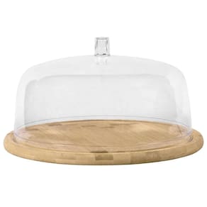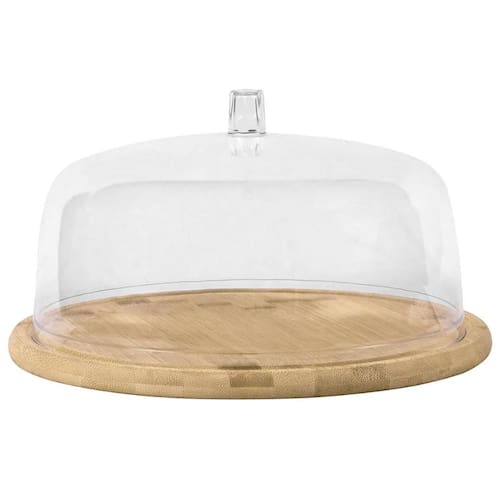 A cúpula transparente, feita de acrílico de alta qualidade, protege os alimentos de impurezas e mantém a umidade, garantindo que suas criações culinárias permaneçam frescas por mais tempo. A base em tom natural proporciona um visual rústico e moderno, combinando perfeitamente com diferentes estilos de decoração, seja em ocasiões formais ou informais.