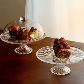 Equipado com um pé delicadamente trabalhado, este prato para bolo não apenas eleva suas sobremesas, mas também adiciona uma elegância adicional à apresentação.
