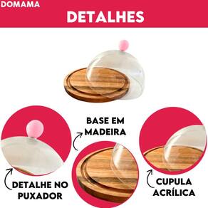 Boleira de Madeira com Tampa e Pegador Rosa 28 cm Utily Domama - Informações