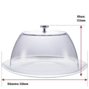 Indicado para: Bolos,Tortas e Sobremesas. Material: Vidro Referência: 21010500000 Medidas: diâmetro: 320mm x altura 155mm