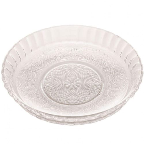 Produzida em vidro de excelente qualidade, com a tonalidade incolor que proporciona elegância e combina com qualquer decoração, possui um diâmetro de 30 cm com uma borda de 6 cm de altura, assim evita que escorra alguma cobertura para fora do prato.