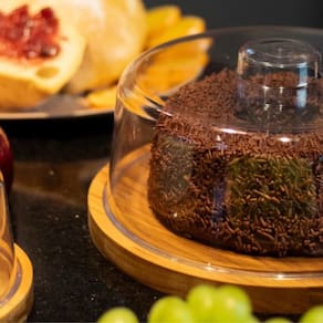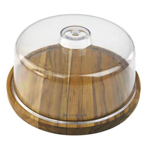 - Itens inclusos: 1 boleira em teca com tampa acrílica e alça