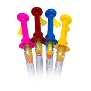 Display com 16 unidades de bastões de bolhas de sabão, ideal para presentear, distribuir em festas ou brincadeiras em grupo.