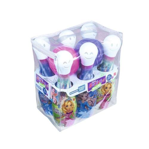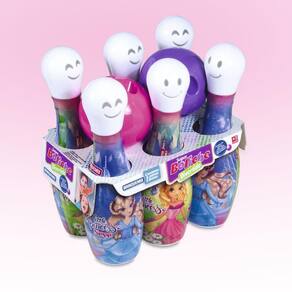 Boliche super boliche menina 6 pinos Boliche divertido contém 6 pinos e duas bolas. Todos os pinos vem com ilustrações divertidas. Podem ocorrer variação de tonalidade na cores. Bolsa plástica comum.INMETRO Ncm: 95030010informações do produto6 Pinos de Boliche contendo 2 bolas.Agora você pode se divertir com o boliche das pequenas princesasImagens meramente ilustrativas.Todas as informações divulgadas são de responsabilidade do Fabricante/Fornecedor.Observe atentamente a idade recomendada para o brinquedo, pode conter partes pequenas que podem ser engolidas.