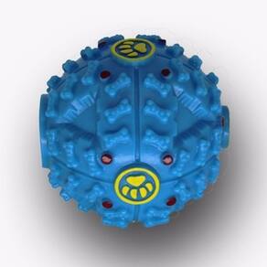 A Squeaky Ball conta com uma abertura para colocar petiscos ou ração, isso torna a brincadeira mais divertida e desafiante. Além disso, em seu interior contém um apito, onde conforme o cachorro brinca ele faz barulho, chamando a atenção do cachorro para o brinquedo.