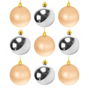 Conjunto de 9 bolas de Natal Champagne e Prata Mix 6cm Casambiente