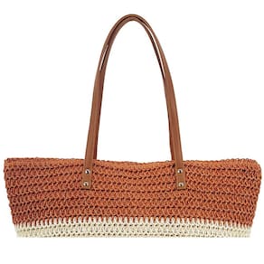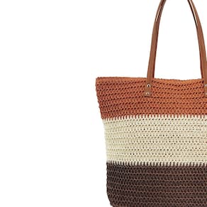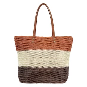 Bolsa Alça Dupla em Palha Sintética Tricolor Nas cores Azul Marinho/Bege/Laranja, Marrom/Bege/Caramelo e Rosa/Bege/AzulTurquesa Material Palha Sintético Fechamento em zíper Alça Dupla em material sintético na cor marrom Forro em tecido Bolso interno Aberto Marca Alice Palucci Medida 48x42x15 (Largura x Altura x Profundidade)