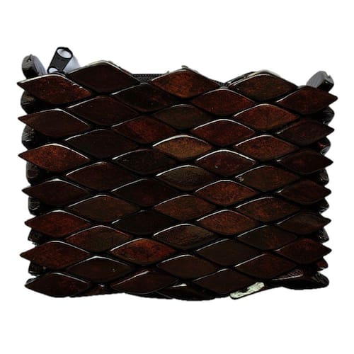 Bolsa Artesanal de Madeira Porta-Moedas, Marrom Escura, com Zíper