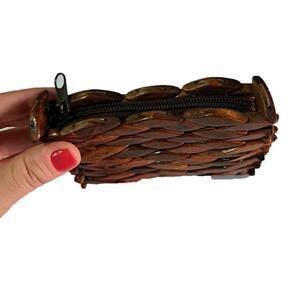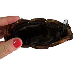 Bolsa Artesanal de Madeira Porta-Moedas, Marrom, com Zíper