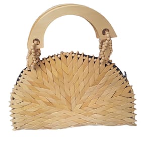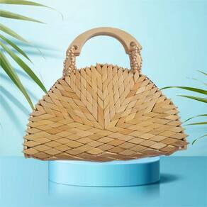 Bolsa Artesanal em Peças Semicírculo Madeira Clara, Alça Curta, com Zíper e interior em tecido cetim
