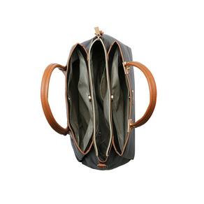 Bolsa estilo satchel com design minimalista e linhas retas, ideal para quem busca elegância clássica no dia a dia. A estampa atemporal e discreta garante um visual sofisticado e fácil de combinar, enquanto o contraste de cores nas alças adiciona um toque moderno à peça.