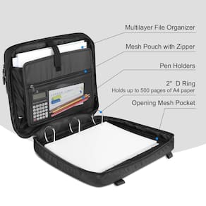 - Armazenamento máximo: comporta vários cadernos, pastas, divisórias, guias, agendas, suprimentos, papéis e até mesmo alguns livros didáticos, mantenha os assuntos separados. Bolso interno com zíper e bolsas de malha ótimas para guardar algumas canetas, marcadores, calculadora e muito mais para fechar para que nada caia. O bolso grande oferece espaço flexível para armazenamento conveniente para manter mais itens contidos em um só lugar