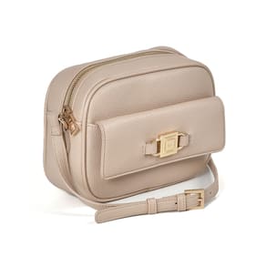 Bolsa Camera bag feita em PU com textura. Possui alça tiracolo ajustável por fivela de metal. Metais personalizados. Bolsa forrada com bolso interno. Abertura com zíper de metal e puxador com logo via marte. Peça principal de metal com logo via marte.