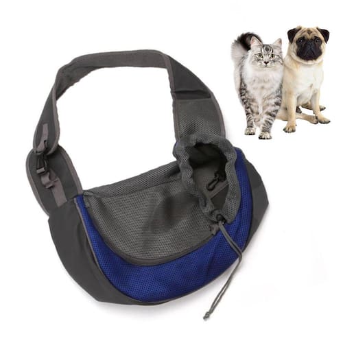 Fecho lateral de facil acesso, com ziper para acomadar facilmente o seu pet, fechamento superior com elastico, tecido de malha respiravel e bolsa na lateral para colocar pequenos itens.