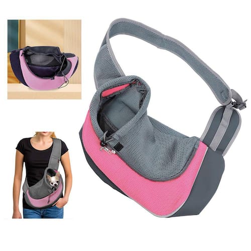 Fecho lateral de facil acesso, com ziper para acomadar facilmente o seu pet, fechamento superior com elastico, tecido de malha respiravel e bolsa na lateral para colocar pequenos itens.