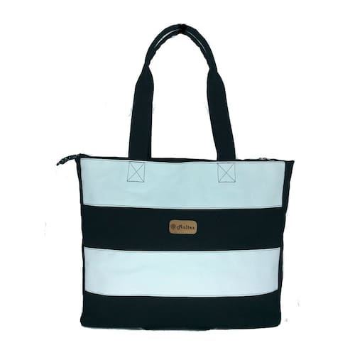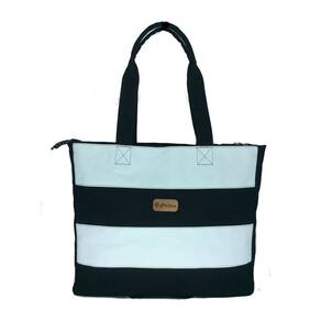 Material: Lona 10 em 100% algodão, Faixa branco em lona 600, Fôrro em Poá Tricoline 100% algodão, Zíper e cursor YKK melhor nacional , Base de Tubox, um produto reciclado e impermeável. 1 bolso interno com zíper e cursor YKK e 2 bolsos internos abertos para celular e chaves.