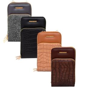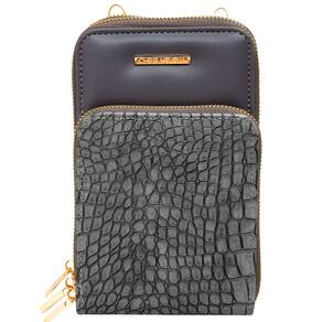 Bolsa Carteira Feminina Com Alça Textura Croco Cor:Cinza - Cinza - Único