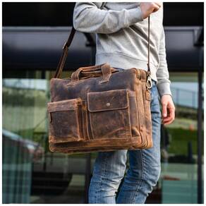 Design Multiuso Elegante: Com um tamanho de 45,72 centímetros de largura, 33,02 centímetros de altura e 12,7 centímetros de profundidade, esta bolsa pode acomodar seu laptop (até 44,45 centímetros) e outros acessórios sem parecer muito volumosa em movimento. Pode ser usada como pasta, bolsa mensageiro para laptop ou bolsa de escritório.