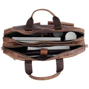 Duas grandes seções de bolso com zíper para vários laptops. Uma com um segmento acolchoado para armazenamento seguro de objetos de valor como laptop, iPad, etc. Um bolso interno para itens como diário, arquivo/pasta, etc. A bolsa possui um segmento separado para cartões, canetas e celular. Um segmento externo com zíper na parte de trás, um fecho de correr e um bolso com fecho de botão na frente para chaves e itens de fácil acesso. Marca: Não Informado