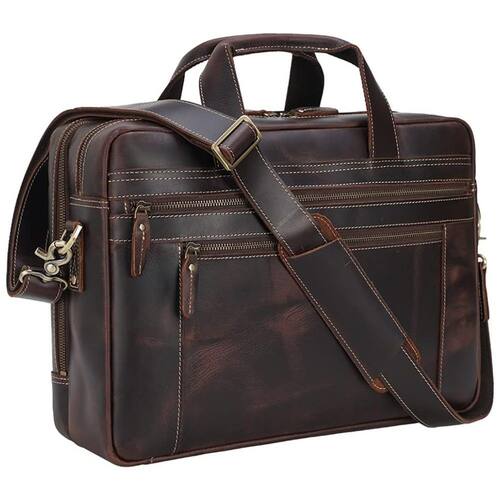 Armazenamento espaçoso: Possui dois compartimentos grandes, dois bolsos frontais com zíper, dois bolsos internos com zíper, três bolsas internas, três porta-canetas, quatro compartimentos para cartões e um bolso traseiro com zíper. A pasta de couro vintage é perfeita para suas viagens diárias de trabalho e de negócios.