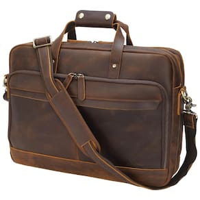 Alça de Bagagem Conversível: Durante longas viagens de negócios, você pode abrir os zíperes do bolso traseiro com zíper para permitir que seja uma alça de bagagem para pendurar a maleta na mala com rodinhas para liberar a fadiga do transporte e tornar a viagem mais fácil. No dia a dia, feche os zíperes para usar como bolso. A bolsa de couro pode ser transportada como bolsa de alça superior, pasta para laptop de 17", bolsa de escritório para trabalho comercial, bolsa mensageiro de viagem, bolsa de ombro diária, pasta de professor ou advogado.