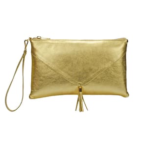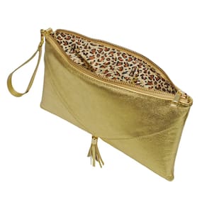 Linda Bolsa Clutch Carteira de Mão ! Uma ótima escolha para finalizar uma produção arrasadora. Bom espaço interno para carregar o essencial. Possui um lindo detalhe com franja de couro para dar uma sofisticação e charme ao produto. Feita em couro, muito versátil e prática, todos os metais (argola, mosquetões, zíperes, etc) são dourados para dar um ar de sofisticação e elegância. Na parte interna possui forro em cetim com textura "animal print", o fechamento principal é feito por zíper para sua maior segurança. Possui alça externa de mão removível. Versátil, pode ser usada desde um evento social até uma festa casual ou balada. Possui a medida ideal para levar celulares grandes, pequenos objetos e o mínimo necessário para seu evento ou passeio.