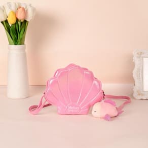 A Bolsa Concha possui alça única transversal, fechamento em zíper e um enfeite lindo para deixá-la ainda mais fofa. Perfeita para o dia a dia