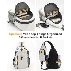 Apresentamos nossas bolsas transversais pretas para mulheres e bolsas tiracolo para homens, as melhores bolsas transversais à prova d'água para uso diário e viagens. Feita com nylon durável e poliéster, esta bolsa garante que seus pertences permaneçam secos, mesmo em dias chuvosos ou com neve. Sua superfície resistente a arranhões aumenta sua longevidade, tornando-a a pequena bolsa tiracolo perfeita para mulheres ou bolsa transversal para homens em todas as estações. Projetada com sua conveniência em mente, esta bolsa tiracolo feminina possui 17 bolsos e 3 compartimentos, oferecendo amplo armazenamento para todos os seus itens essenciais. O compartimento principal espaçoso (17,8 x 13,2 x 36,1 cm) serve para um iPad ou tablet grande, enquanto o bolso frontal (10,7 x 20,1 cm) é ideal para armazenar seu telefone de 7 polegadas ou pequenos acessórios. A bolsa também inclui bolsos laterais para guardar uma garrafa de água ou guarda-chuva, e um chaveiro para fácil acesso às suas chaves. Fique conectado enquanto estiver em movimento com a porta de carregamento USB integrada e o orifício para fone de ouvido (carregador portátil não incluído). Se você estiver ouvindo música, fazendo chamadas ou carregando seus dispositivos, esta bolsa tiracolo feminina facilita isso. Para segurança, tiras refletivas nos bolsos frontal e traseiro garantem visibilidade em condições de pouca luz. O conforto é fundamental com esta bolsa, com alças de ombro ajustáveis (27,5 a 120 cm) e uma parte traseira acolchoada respirável, projetada para reduzir a pressão nos ombros. Se você estiver usando como uma bolsa tiracolo para viagens, bolsa tiracolo para mulheres ou bolsa de ombro masculina, esta bolsa oferece conforto e funcionalidade superiores. Perfeita para caminhadas, ciclismo, acampamento, corrida ou apenas para uso diário, esta bolsa transversal à prova d'água também é ideal para viagens de negócios ou passeios casuais. Escolha nossa bolsa tiracolo feminina ou masculina para uma bolsa transversal versátil e antirroubo que combina praticidade, conforto e estilo. - Armazenamento seguro e organizado: com 2 compartimentos principais, um compartimento para tablet, 17 bolsos e um chaveiro. Tamanho: 36 x 18 x 13 cm, oferece armazenamento amplo e organizado enquanto mantém as mãos livres - Com suporte de telefone no peito: o bolso do telefone significa 10,7 x 20 cm (largura x comprimento), serve para quase todos os tamanhos de telefone do mercado. Se você estiver viajando, caminhando, andando ou simplesmente para passear, o bolso no peito do telefone permite acesso rápido e fácil ao seu telefone sem passar pela bolsa - Com orifícios para fone de ouvido na frente e atrás: pode atender chamadas ou desfrutar de música ou podcasts em movimento sem o incômodo de fios emaranhados, o que a torna a companhia perfeita para caminhadas curtas ou aventuras ao ar livre - Tiras refletivas seguras: a mochila sling possui tiras refletivas na frente e atrás, durante atividades de pouca luz ou noturnas, mantém você mais seguro ao torná-lo facilmente perceptível para os outros. Perfeita para uso urbano e externo - Alça de ombro extensível e acolchoada: a alça de ombro acolchoada ajustável varia de 27,5 a 120 cm, servindo para usuários de todas as formas e tamanhos de corpo. Se você estiver usando camadas no inverno ou prefere um ajuste mais solto, a alça mais longa garante melhor ajuste e conforto - Proteção resistente à água para pertencentes: o tecido desta bolsa transversal é projetado para repelir a água, fazendo com que salpicos se espalhem e rolem. Se você estiver preso em chuva leve ou lidando com derramamentos acidentais, seus itens essenciais permanecem secos e protegidos - Várias opções de uso: como uma mochila com tiras, a alça é ajustável para os lados esquerdo e direito. Além disso, esta bolsa oferece várias maneiras de usar: use-a como uma bolsa tiracolo, bolsa de peito ou bolsa de ombro único, tornando-a a bolsa multifuncional perfeita para qualquer situação