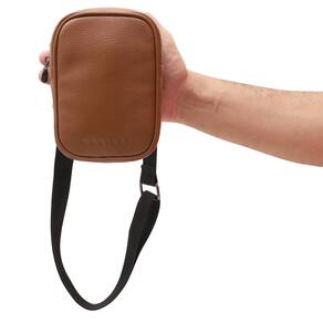 Estrutura do corpo: Construção em couro de espessura média e toque macio. Forro em sarja mista de poliéster e algodão. Logomarca destacada na parte frontal. Dimensões: 12,5 x 17 x 05 cm largura x altura x espessura Peso aproximado: 200 gramas Material: couro