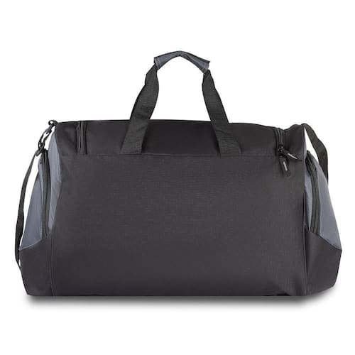Fabricada em tecido poliéster, com compartimento interno para roupas e compartimento externo para roupa suja. Na parte inferior da mala possui 4 borrachas de apoio para que a mala não encoste diretamente no chão. Zíper frontal e bolsos laterais, com alça de mão e ombro.