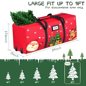 -?Capacidade de armazenamento extra grande?O tamanho da grande sacola de armazenamento para árvores de Natal é 59" L x 17" L x 27,6" H, oferece espaço suficiente para armazenar uma árvore de Natal artificial desmontada de 9 pés de tamanho, bem como outras decorações de Natal, como guirlandas, luz de topo de árvore, bonecas, enfeites, etc.; uma para todas