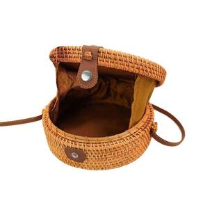 Bolsa De Bambu Redonda Feminina Com Alça Fixa Forrada Verão