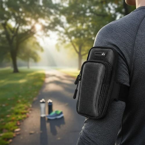 Bolsa de Braço Esportiva Multifuncional: Praticidade, segurança e estilo para o seu dia a dia.Ideal para atividades físicas, viagens ou uso diário, esta bolsa de braço compacta e moderna permite transportar com segurança celular, chaves, cartões, fones de ouvido e acessórios, mantendo tudo ao alcance e liberando suas mãos.Características:* Estrutura leve e resistente* Material durável, à prova de respingos e suor* Dois compartimentos com zíper para organização* Compartimento superior acolchoado para celular* Detalhes refletivos para visibilidade noturna* Entrada para fone de ouvidoBenefícios:* Proteção para seus pertences durante atividades* Mãos e bolsos livres para maior conforto* Organização prática e acesso rápido* Design moderno para uso esportivo ou casualDimensões: 18cm (altura) x 4cm (largura) x 10cm (comprimento). Peso: 87g.A combinação perfeita de funcionalidade, segurança e conforto para acompanhar você em qualquer atividade com praticidade e estilo. Marca: Não Informado