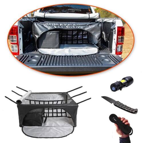 Conteúdo da Embalagem: - 01 Bolsa de Caçamba Horizontal M. - 01 Bolsa Termica P. - 01 Tela Divisoria. - 01 Kit de instalação. - 01 Canivete - 01 Fita de 5 metros - 01 Lanterna em LED