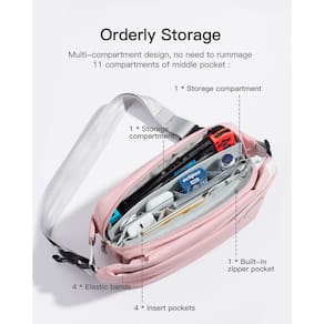 Inateck Bolsa tiracolo X, bolsa tiracolo elegante com alça de ombro ajustável, bolsa de ombro resistente à água para homens e mulheres, rosa, Casual - Armazenamento de grande capacidade/compacto e espaçoso: nossa bolsa transversal para mulheres e homens mede 34 x 15 x 8 cm (13,8 x 5,9 x 3,1 polegadas). A seção frontal do compartimento principal possui um bolso com zíper e bolsos de camada dupla com 2 grades, enquanto a seção traseira serve como um compartimento de armazenamento de eletrônicos, acomodando facilmente itens como telefones, switch ou iPad Mini. A divisória tem quatro faixas elásticas para organizar itens como cabos de dados. - Estrutura em camadas: esta bolsa tiracolo compacta adota uma estrutura em camadas com 19 zonas funcionais. Tanto a frente quanto a traseira têm bolsos ocultos com zíper para itens importantes. O bolso frontal inclui pequenos bolsos e um gancho para chave. O bolso traseiro tem três compartimentos para cartão para acesso rápido a documentos, cartões de crédito e muito mais. Além disso, há uma camada intermediária entre os bolsos frontal e traseiro para armazenar itens como guarda-chuvas e obter separação seca e molhada. - Resistente a respingos e durável: esta mochila compacta e leve tem um peso líquido de 360 g. O painel frontal é feito de material brilhante, enquanto a traseira é feita com poliéster 900D, tornando-o resistente a respingos e ao desgaste. O compartimento principal e as divisórias frontal e traseira possuem zíperes YKK, garantindo durabilidade e abertura e fechamento suaves. - Várias opções de uso: a alça de ombro está equipada com uma fivela de liberação rápida Duraflex e uma fivela de pressão de ajuste rápido, permitindo que você ajuste livremente o comprimento da alça de ombro (73,7-122 cm) e encontre facilmente o comprimento adequado. Esta bolsa de peito pode ser usada diagonalmente no peito ou no ombro ou nas costas como uma mochila transversal, adaptando-se a diferentes estilos de vestir e proporcionando a você uma experiência de uso personalizada. - Moderna e versátil: esta bolsa transversal é projetada em uma cor rosa legal com linhas elegantes. A capa frontal lisa parece muito texturizada. É uma companhia ideal para várias ocasiões, como compras, viagens, caminhadas, ciclismo, pesca, corrida, passear com o cachorro, assistir a shows e passeios na praia. Além disso, também é uma excelente opção de presente para familiares e amigos. - O que você recebe: uma bolsa sling e uma caixa de embalagem requintada, 12 meses
