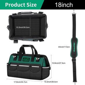 Materiais e construção premium – Esta bolsa de ferramentas é feita de tecido de poliéster 600D que oferece durabilidade e confiabilidade incomparáveis. O tecido duplo com costura fina de todo o corpo da ferramenta torna a bolsa resistente e duradoura. Não precisa se preocupar com a sua bolsa de ferramentas ser danificada ou quebrada durante o uso. - Bolsa de ferramentas de boca larga e aberta: esta bolsa de ferramentas possui boca aberta com uma armação de metal interna e zíper superior de tração dupla para facilitar a organização e o acesso. Basta puxar o zíper para abrir esta bolsa suavemente e colocar ou tirar suas ferramentas rapidamente quando necessário - Tecido Oxford 1680D: o kit é feito de tecido Oxford 1680D de alta qualidade sintetizado por quatro camadas: tecido Oxford, camada impermeável, folha de plástico PE, camada impermeável, que tem resistência superior, resistência, resistência a manchas e durabilidade de longa duração - Tiras refletivas: a bolsa de ferramentas é embalada com um anel de tiras reflexivas que aumentam a visibilidade e a segurança ao trabalhar em condições de pouca luz - Grande capacidade: 44,7 cm C x 26 cm L x 27,4 cm A. Tem 6 bolsos no interior e 8 na parte externa desta bolsa de ferramentas. Adequado para armazenar uma variedade de pequenas ferramentas manuais, ferramentas elétricas portáteis, mantenha suas ferramentas organizadas e faça o trabalho mais rápido - Design humanizado: as alças de borracha podem aliviar efetivamente a pressão de levantar objetos pesados, e o design com costura cruzada aumenta muito o peso do kit de ferramentas, que é adequado para marceneiros, eletricistas, mecânicos e a maioria dos artesãos