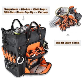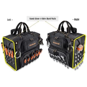 Nylon 1680D tecido balístico Oxford. Rodas grandes A caixa de ferramentas rolante constrói uma alça telescópica de titânio e rodas com piso de para fácil manobra em terrenos acidentados Um organizador de ferramentas rolantes construído para durar para Pro. Base robusta a bolsa organizadora rolante sobre rodas possui um fundo durável para proteger suas ferramentas da água e da lama. Portanto, esta bolsa de ferramentas rolável ajuda você a ficar longe de ferrugem. Uma bolsa de ferramentas rígida protetora. 46 Bolsos Este saco de ferramentas de rolamento técnico de vem com um compartimento ESPAÇOSO, 46 bolsos e 38 pcs Molle Loops para ajudá lo a se manter organizado. Um grande organizador de ferramentas de rolamento para serviço pesado. Acesso Rápido Esta grande sacola rolante com rodas constrói uma base rígida, mantendo os organizadores de ferramentas na vertical e totalmente abertos. E a parede de ferramentas robusta e o interior laranja proporcionam visibilidade extra. Resistente O porta ferramentas resistente constrói o tecido Ballistic 1680D. O hardware Gun Metal torna esta bolsa de ferramentas de viagem com rodas um caddy A Pro durável para ferramentas de rolamento. saco de canteiro de obras para Pro Marca: Não Informado