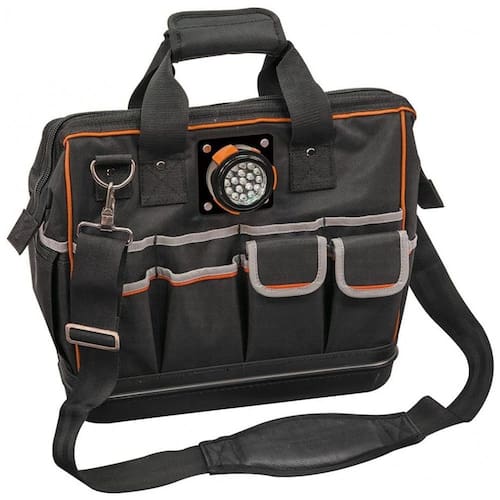 A luz LED removível da bolsa de ferramentas pode ser posicionada para iluminar dentro da bolsa ou no espaço de trabalho. O organizador de ferramentas possui 31 bolsos para zenamento máximo de ferramentas. O fundo totalmente moldado protege dos elementos. Interior laranja para fácil visibilidade da ferramenta. Tecido balístico 1680d para maior durabilidade. Alça de ombro com acolchoamento extra e alças para fácil transporte. A luz possui gancho giratório e ímã para uso com as mãos livres Marca: Não Informado