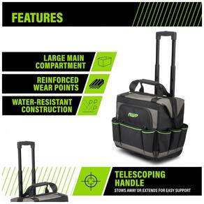 AWP Work Gear A marca dos profissionais de zenamento e organização de ferramentas. AWP . Rolling Tool Bag zenamento versátil e durável de ferramentas rolantes com alças fáceis de transportar e rodas para serviços pesados que facilitam a organização e o transporte de ferramentas em todo o canteiro de obras. Transporte Versátil Rodas resistentes e alça telescópica se estende para fácil transporte As alças de borracha facilitam o levantamento e o transporte da bolsa de ferramentas com a mão. Durabilidade a longo prazo Construída a partir de material de poliéster resistente com costuras reforçadas nas áreas de desgaste, esta bolsa de ferramentas rolante seguramente aguenta em ambientes difíceis, garantindo que suas ferramentas permaneçam protegidas e organizadas zenamento de ferramentas superior Marca: Não Informado