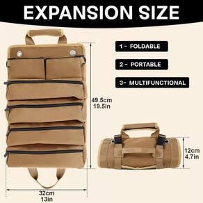 Descrição: Bolsa de enrolar para ferramentas atualizadas: Esta bolsa de ferramentas é feita de tecido Oxford atualizado com revestimento de PVC interno, zíperes à prova de ferrugem, tiras de qualidade, fivelas e borda bem costurada, o que a torna durável e resistente à água. O material atualizado e o revestimento de PVC estão em conformidade com a última E-Mark, com menos cheiro e sem danos à saúde. Rolo de ferramentas de grande capacidade: este saco de ferramentas tem 4 compartimentos grandes fixos, 2 pequenas bolsas removíveis com anéis em D e 5 bolsas externas da bolsa. Com esta bolsa de ferramentas, você pode organizar com eficiência suas ferramentas, como chaves de fenda, chaves, alças, catracas e alicates. 2 bolsas removíveis oferecem a melhor opção para separar peças pequenas, como engrenagens, pregos e soquetes, para que você não precise vasculhá-las em uma pilha de ferramentas. Compacto e portátil: com esta bolsa enrolável de ferramentas, você pode trazer as ferramentas necessárias/de emergência quando sair viagem ou trabalho, é compacto quando você o enrola, o que economiza muito espaço para você, que você pode colocá-lo em seu caminhão, carro, barco, motocicleta ou até mesmo bicicleta. propósito: Este saco de enrolar seria um bom assistente para carpinteiro, eletricista, encanador, reparador, artesão e assim por diante. Este saco de rolo de ferramentas seria a escolha ideal para você. O pacote inclui: 1 x bolsa de ferramentas multiuso