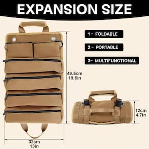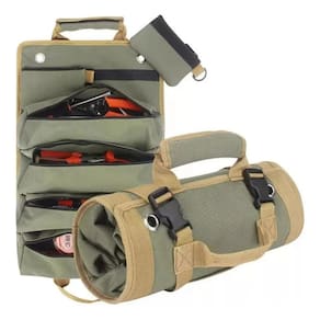 Descrição: Bolsa de enrolar para ferramentas atualizadas: Esta bolsa de ferramentas é feita de tecido Oxford atualizado com revestimento de PVC interno, zíperes à prova de ferrugem, tiras de qualidade, fivelas e borda bem costurada, o que a torna durável e resistente à água. O material atualizado e o revestimento de PVC estão em conformidade com a última E-Mark, com menos cheiro e sem danos à saúde. Rolo de ferramentas de grande capacidade: este saco de ferramentas tem 4 compartimentos grandes fixos, 2 pequenas bolsas removíveis com anéis em D e 5 bolsas externas da bolsa. Com esta bolsa de ferramentas, você pode organizar com eficiência suas ferramentas, como chaves de fenda, chaves, alças, catracas e alicates. 2 bolsas removíveis oferecem a melhor opção para separar peças pequenas, como engrenagens, pregos e soquetes, para que você não precise vasculhá-las em uma pilha de ferramentas. Compacto e portátil: com esta bolsa enrolável de ferramentas, você pode trazer as ferramentas necessárias/de emergência quando sair viagem ou trabalho, é compacto quando você o enrola, o que economiza muito espaço para você, que você pode colocá-lo em seu caminhão, carro, barco, motocicleta ou até mesmo bicicleta. propósito: Este saco de enrolar seria um bom assistente para carpinteiro, eletricista, encanador, reparador, artesão e assim por diante. Este saco de rolo de ferramentas seria a escolha ideal para você. O pacote inclui: 1 x bolsa de ferramentas multiuso