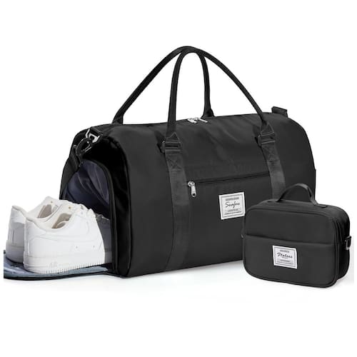- Grande capacidade e multifuncional: essa grande capacidade pode acomodar laptops, roupas, sapatos, etc. A manga na parte de trás da mochila tem uma alça adesiva extra para manter a bolsa firmemente na bagagem e há alças ajustáveis para ajustar a estanqueidade da mochila. Esta bolsa de ginástica pode ser carregada na mão, transversal ou em uma mala e pode ser usada de várias maneiras.