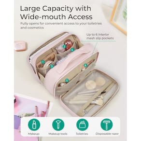 - Acesso rápido e fácil: o design amplo e de abertura total oferece fácil acesso aos seus produtos de higiene pessoal e cosméticos, permitindo que você encontre rapidamente o que precisa. Quando for hora de fazer as malas, basta fechar o zíper — chega de cavar na bagunça. Tudo está bem organizado e em seu lugar!
