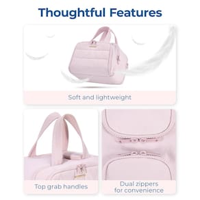 - Materiais ultra leves e macios: feito de tecido Taslan macio e luxuoso. Esta bolsa de higiene pessoal acolchoada parece algodão doce, dando às pessoas uma atmosfera descontraída e confortável. Também é uma bolsa de maquiagem confiável, funcional e moderna. Definitivamente um presente de Natal ideal para você, sua família e seus amigos