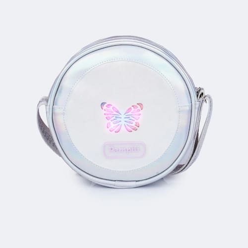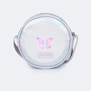 A bolsa de LED prata é o acessório ideal para complementar qualquer look com um toque de sofisticação e diversão! Com formato redondo, ela se destaca pelo detalhe a laser no formato de borboleta, trazendo um charme extra com o espelho holográfico transparente.